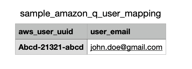 Note: Your user mapping csv must contain mapping aws_user_uuid and user_email as headers (Refer to the example below).