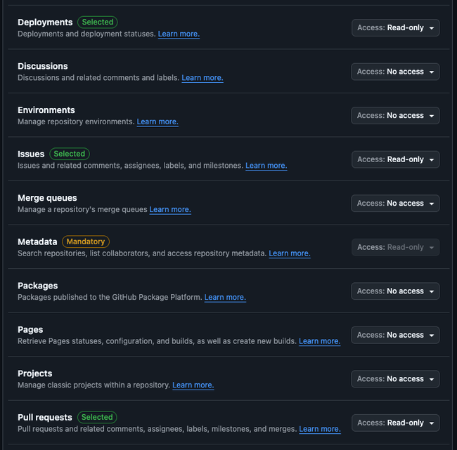 | Repository | Pull requests | Read-only |