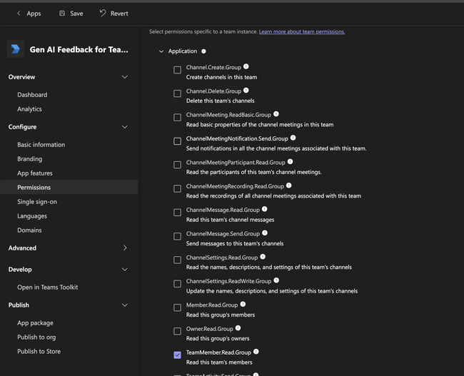 Expand Application permissions and check TeamMember.Read.Group.