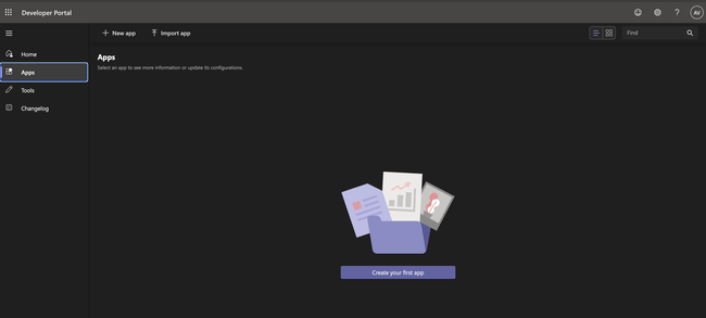 Next, open the Microsoft Teams Developer Portal and click + New app.