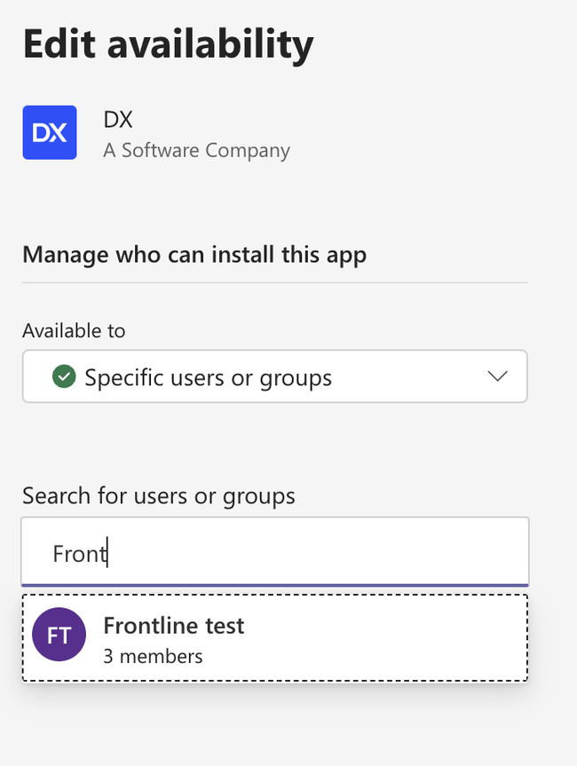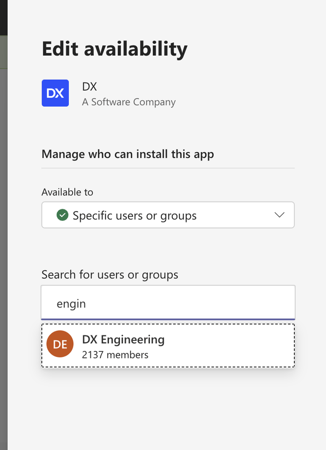 If you have migrated to use App Centric Management in Microsoft, you’ll need to have the app available either to Everyone or Specific users and groups. You’ll be able to select the users or groups (including teams) you plan to install the app to.